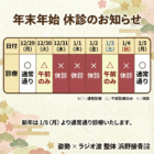 【千葉市中央区】浜野接骨院の2025-2026年 年末年始の診療日程について