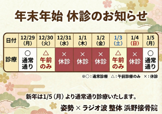 【千葉市中央区】浜野接骨院の2025-2026年 年末年始の診療日程について